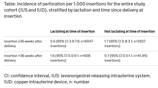 Some women worry about the possibility of a perforated uterus with an IUD. The UK released this Drug Safety Update in 2015 about the risks: The most important risk factors for uterine perforation are insertion during lactation and insertion in the 36 weeks after giving birth. The IUDs studies included both copper and hormonal. Here are the results from the Drug Safety Update study on women as to perforation risk: